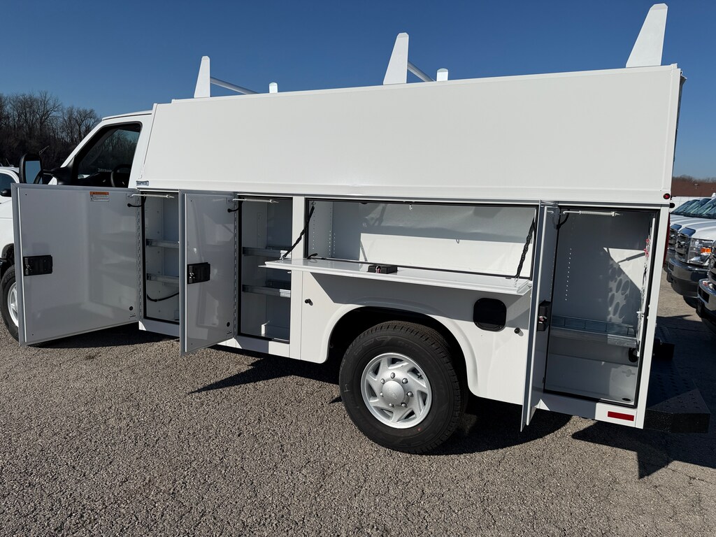 KNAPHEIDE ULTRA LOW ROOF KUV WITH 3 BAR LADDER RACK, POWER LOCK PACKGE FOR BINS AND REAR DOORS, REAR CAMERA SYSTEM WITH MIRROR MOUNTED MONITOR, TRAILER TOW PACKAGE, KNAPLINED REAR STEP BUMPER, STROBE LIGHTS. SALE PRICE INCLUDES KUV BODY AND INSTALLATION, FORD WINDOW STICKER REFLECTS CHASSIS PRICING ONLY AND DOES NOT INCLUDE THE ADDITIONAL COST OF THIS UPFIT. SEE DEALER FOR DETAILS.