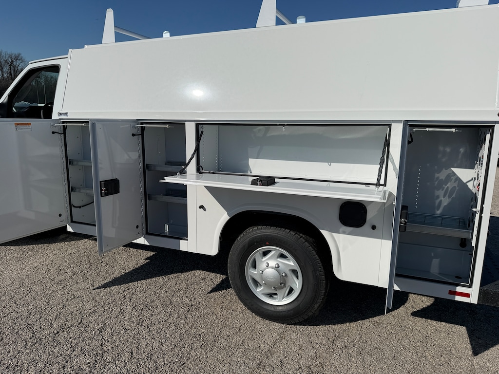 KNAPHEIDE ULTRA LOW ROOF KUV WITH 3 BAR LADDER RACK, POWER LOCK PACKGE FOR BINS AND REAR DOORS, REAR CAMERA SYSTEM WITH MIRROR MOUNTED MONITOR, TRAILER TOW PACKAGE, KNAPLINED REAR STEP BUMPER, STROBE LIGHTS. SALE PRICE INCLUDES KUV BODY AND INSTALLATION, FORD WINDOW STICKER REFLECTS CHASSIS PRICING ONLY AND DOES NOT INCLUDE THE ADDITIONAL COST OF THIS UPFIT. SEE DEALER FOR DETAILS.