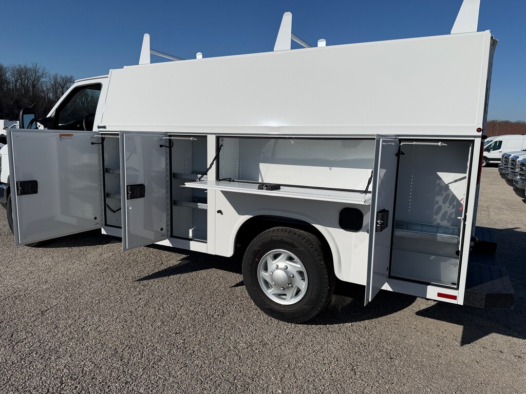 KNAPHEIDE ULTRA LOW ROOF KUV WITH 3 BAR LADDER RACK, POWER LOCK PACKGE FOR BINS AND REAR DOORS, REAR CAMERA SYSTEM WITH MIRROR MOUNTED MONITOR, TRAILER TOW PACKAGE, KNAPLINED REAR STEP BUMPER, STROBE LIGHTS. SALE PRICE INCLUDES KUV BODY AND INSTALLATION, FORD WINDOW STICKER REFLECTS CHASSIS PRICING ONLY AND DOES NOT INCLUDE THE ADDITIONAL COST OF THIS UPFIT. SEE DEALER FOR DETAILS.